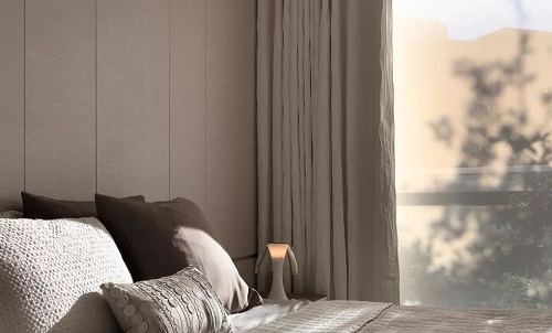 臥室:在這樣的陽光中迎接每一天,或者周末懶在床上,都是一種享受。光是望著樹影照映在床上,能夠讓人放松心情,因此,我們特別挑選有點皺褶質(zhì)感的窗簾,避免壓抑的感覺,讓空間更有放松感。