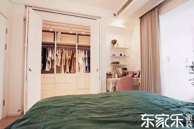 主臥的設(shè)計非常豐富,床尾利用內(nèi)凹的部分打造成 一個獨立的衣帽間,右側(cè)靠窗的角落則剛好擺放一個梳妝臺,充分利用空間。