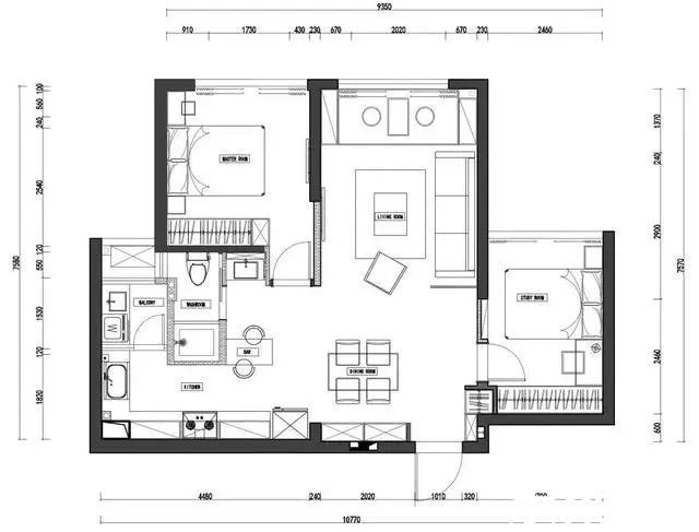 客餐廳之間僅用黑框玻璃進行了半隔斷,矮小的家具也是小戶型的優(yōu)選??看拔恢玫牡嘏_設(shè)計,休息娛樂兩不誤。