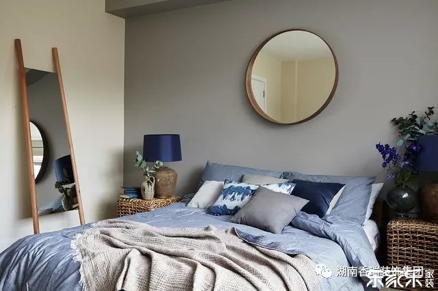 這間臥室精美地混合了一種冷靜的灰色和藍(lán)色配色方案,自然觸感和鏡子的華麗曲線。這是一個輕松的睡眠空間,既聰明又柔和的完美結(jié)合。