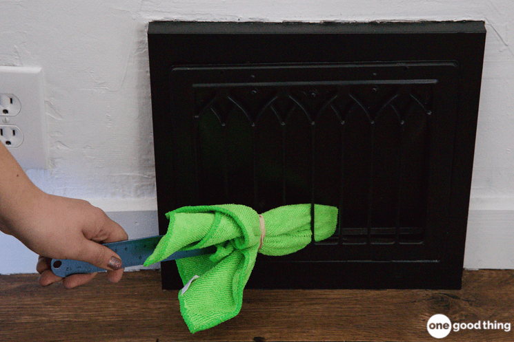 將一塊干凈的超細(xì)纖維布包裹在標(biāo)尺周圍,以幫助您清潔電器下方,格柵內(nèi)部和周圍以及其他狹小空間的灰塵。