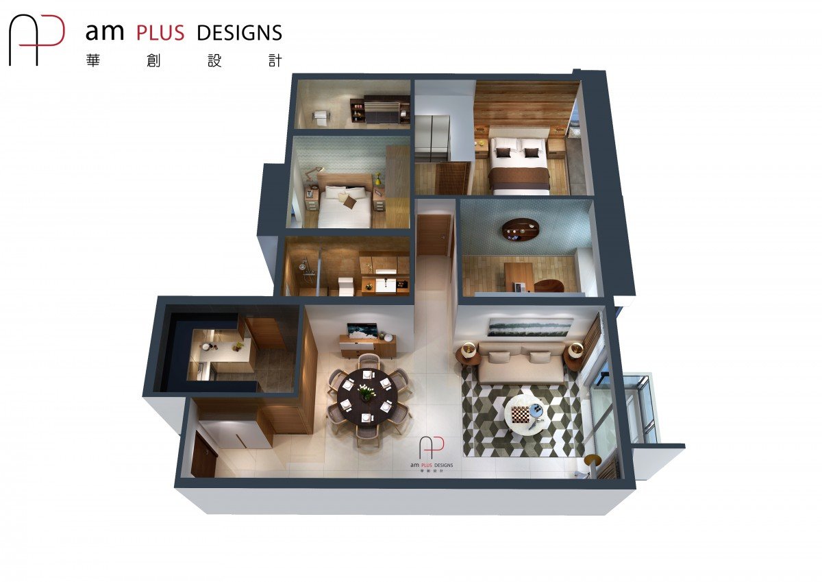 一般情況下,這樣3D Rendering配合其他平面/立面圖紙,已經(jīng)足夠表達設(shè)計效果及作討論之用,但如果客戶的設(shè)計時間相對寬松,間隔比較復(fù)雜的情況下,亦可增加3D Floor Plan作額外的輔助展示。